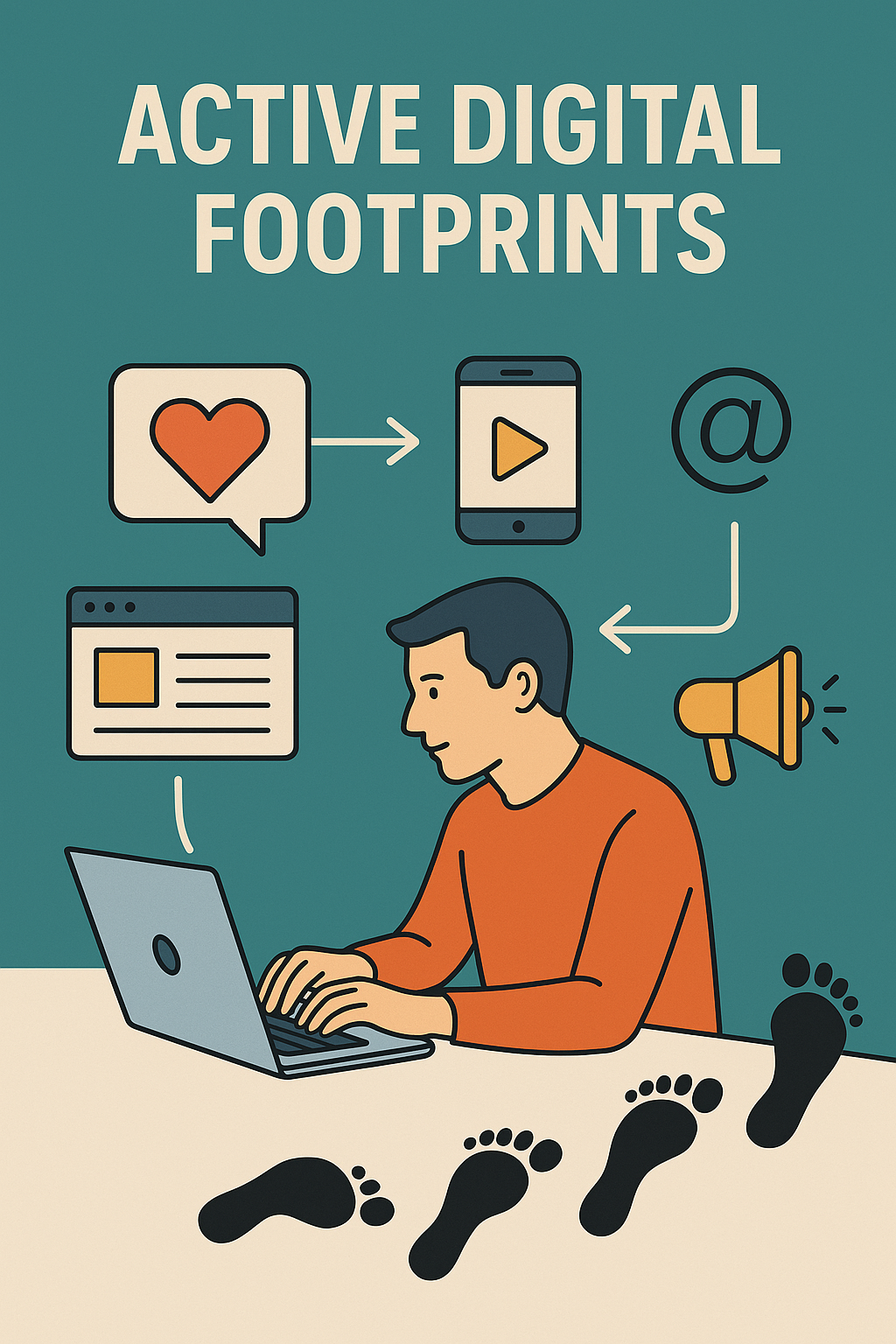 Active Digital Footprints – Information you share, such as social media posts, comments, emails, or account sign-ups. An active digital footprint refers to the data you intentionally share online.